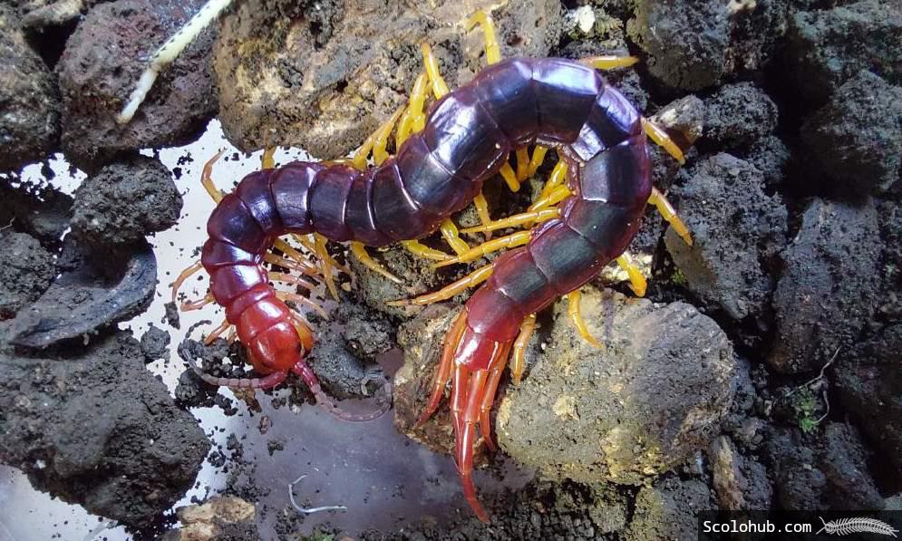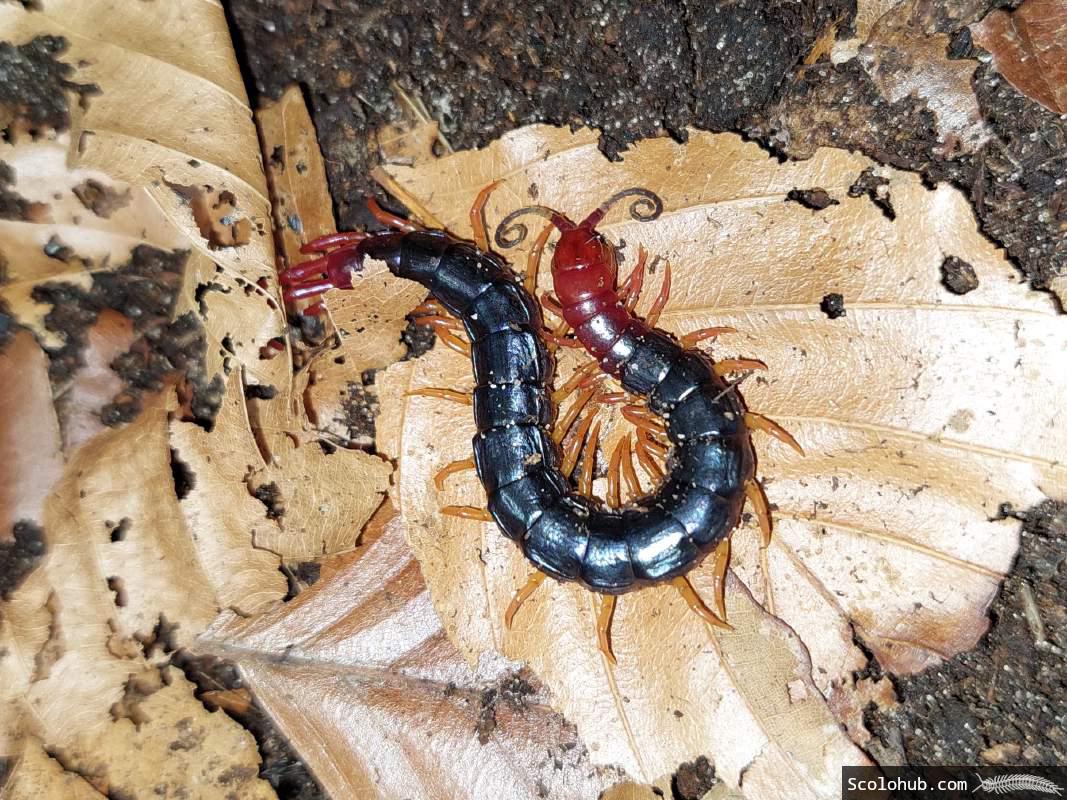 Otostigmus sp. “Cameroon Violet” ist bzw. war im Hobby fälschlicherweise der Gattung Rhysida zugeordnet. Die Position der Stigmen entspricht jedoch der Gattung Otostigmus.