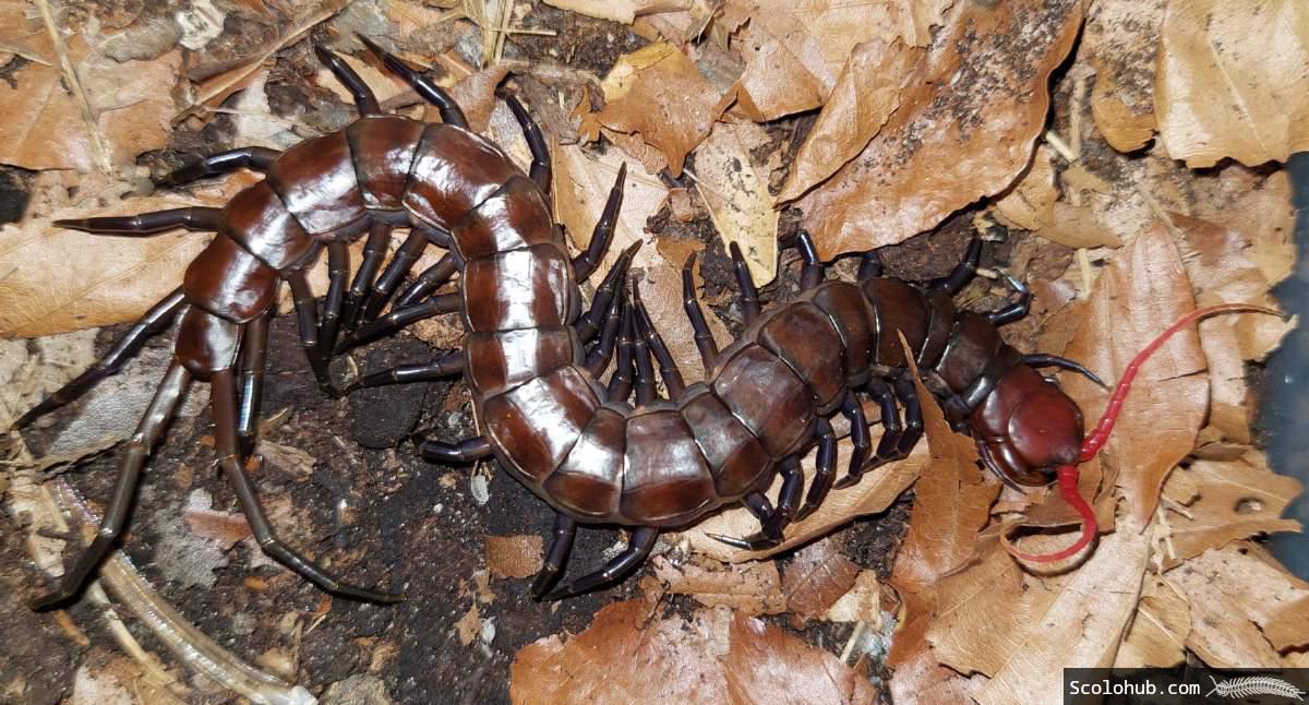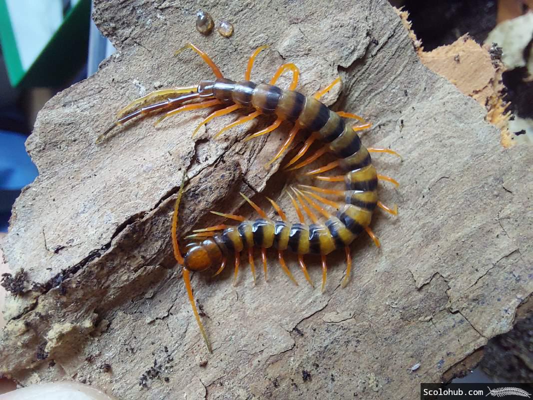 Jungtiere unterscheiden sich deutlich von der Adultfärbung und sind in den ersten Stadien orange-schwarz gebändert. Wie viele andere große Arten der Gattung Scolopendra aus den Tropen ist auch diese Form nachtaktiv, agil und temperamentvoll.
