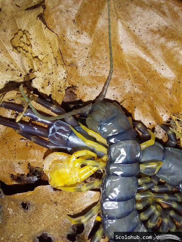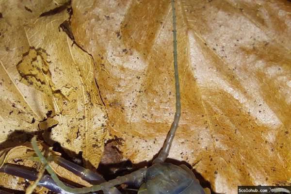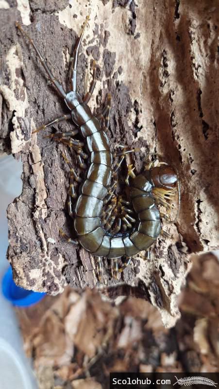 Junge Skolopender (Pedelings) besitzen im ersten Nymphenstadium noch keinen vollständig ausgehärteten Chitinpanzer und sollten in dieser Phase nicht von der Mutter getrennt werden. Mit zunehmendem Wachstum entwickeln sich feste Tergite und Sternite, getrennt durch elastische Pleuren.